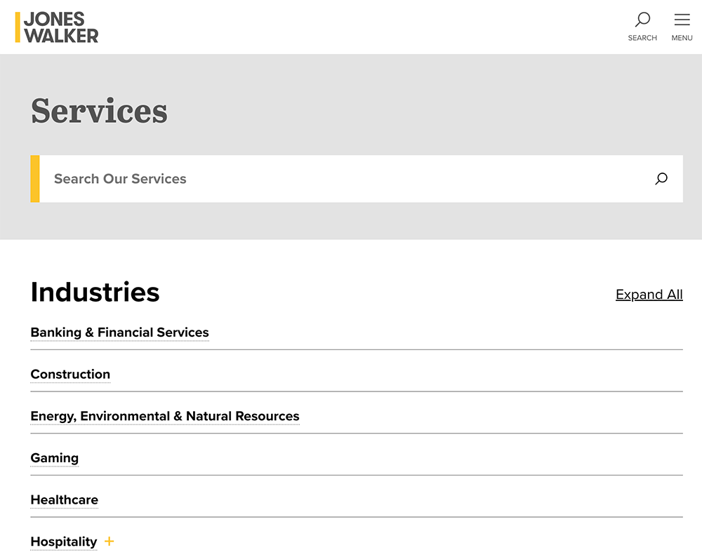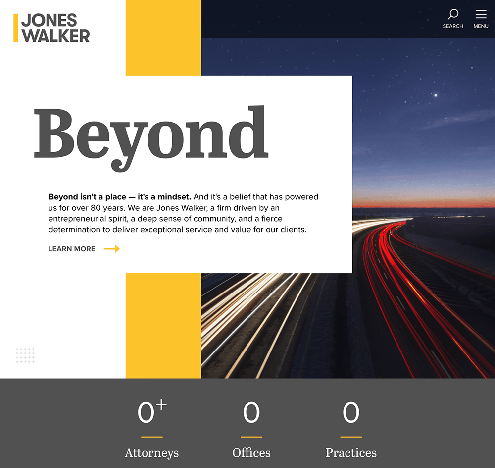 Jones Walker, an enterprising law firm with more than 350 practicing attorneys and a forward-thinking attitude, wanted to refresh its brand, modernize its digital presence, and go beyond where it had previously been.